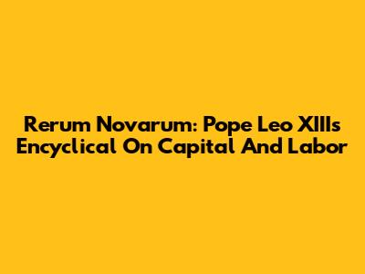 Rerum Novarum: Pope Leo XIII's Encyclical On Capital And Labor