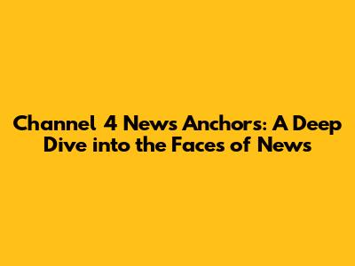 - [Insert Name of a Channel 4 News Anchor]: [Give a brief background of the anchor. Mention their start with Channel 4, their rise to prominence, and any notable awards or recognitions they have received. Include information about their key reporting roles, the stories they're known for covering, and any special segments or programs they were involved in. Also, if there were any significant controversies they faced. Discuss the impact this anchor had on the network's audience, their style, and the legacy they left behind. Conclude with what they are up to now.]