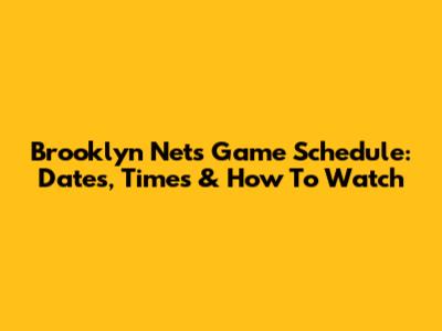 Brooklyn Nets Game Schedule: Dates, Times & How To Watch