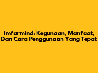 Imfarmind: Kegunaan, Manfaat, Dan Cara Penggunaan Yang Tepat