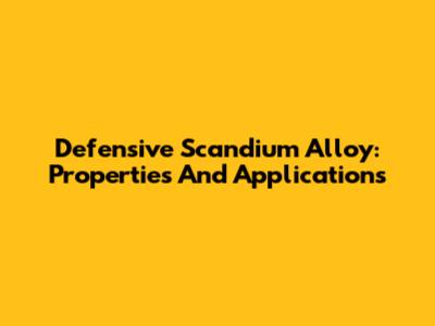 Defensive Scandium Alloy: Properties And Applications