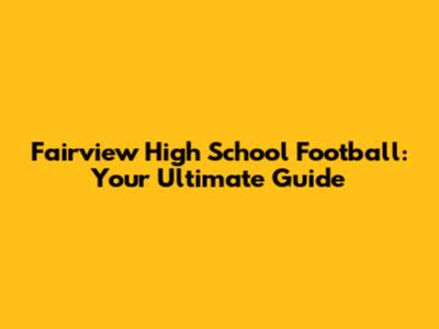Fairview High School Football: Your Ultimate Guide