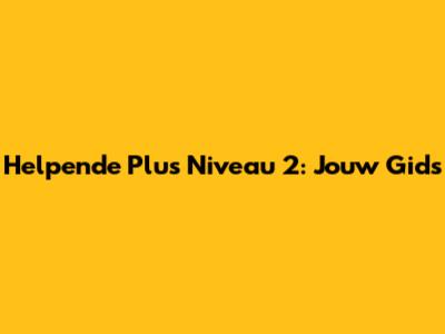 Helpende Plus Niveau 2: Jouw Gids